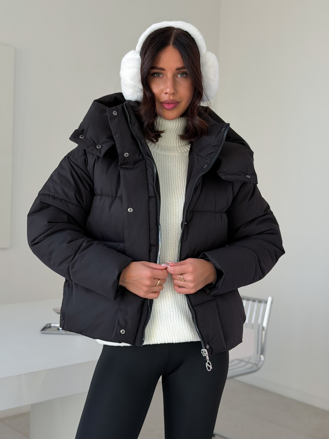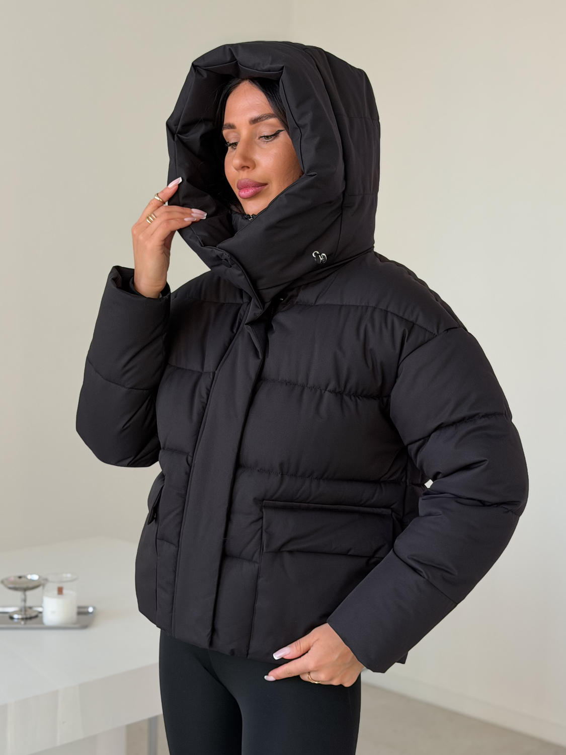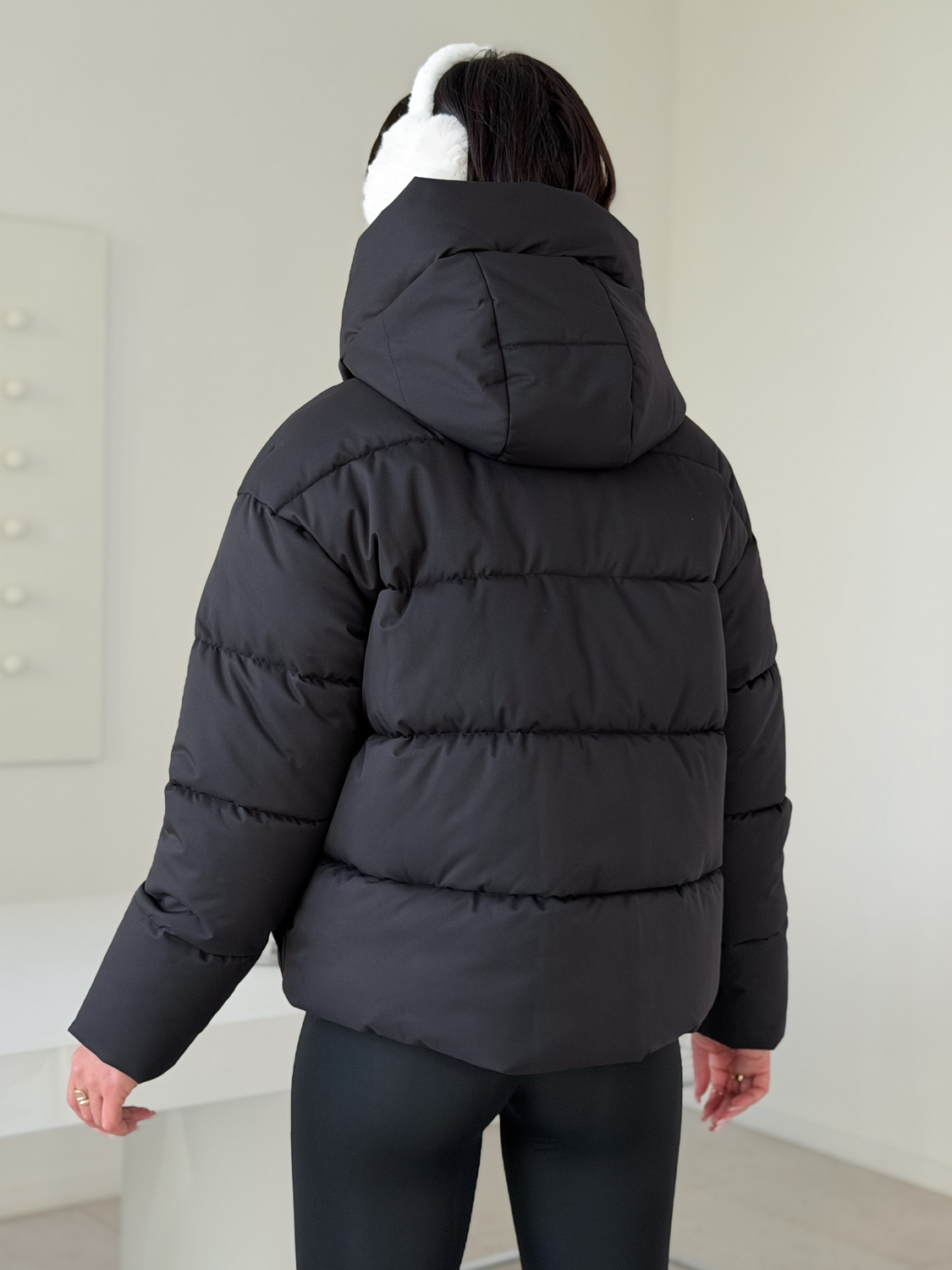 Куртка женская зимняя короткая дутая пуховик зефирка оверсайз черная