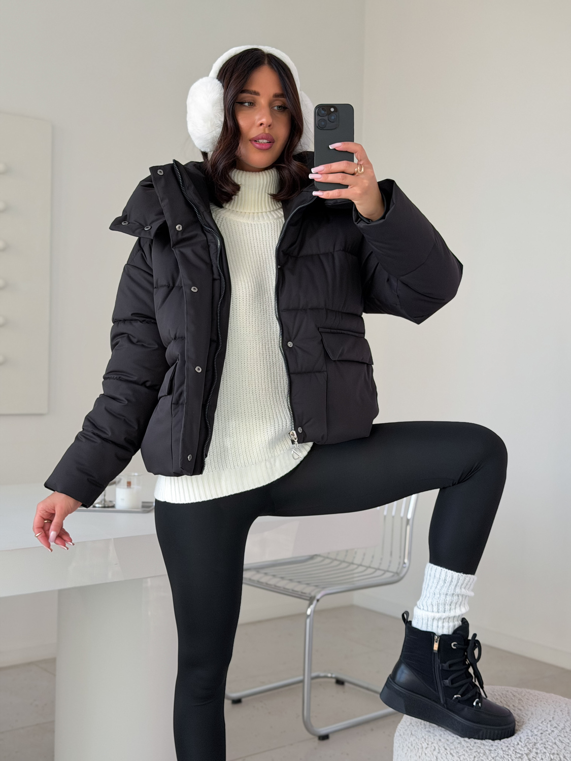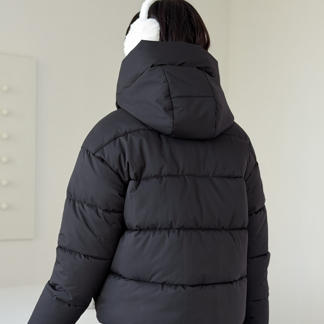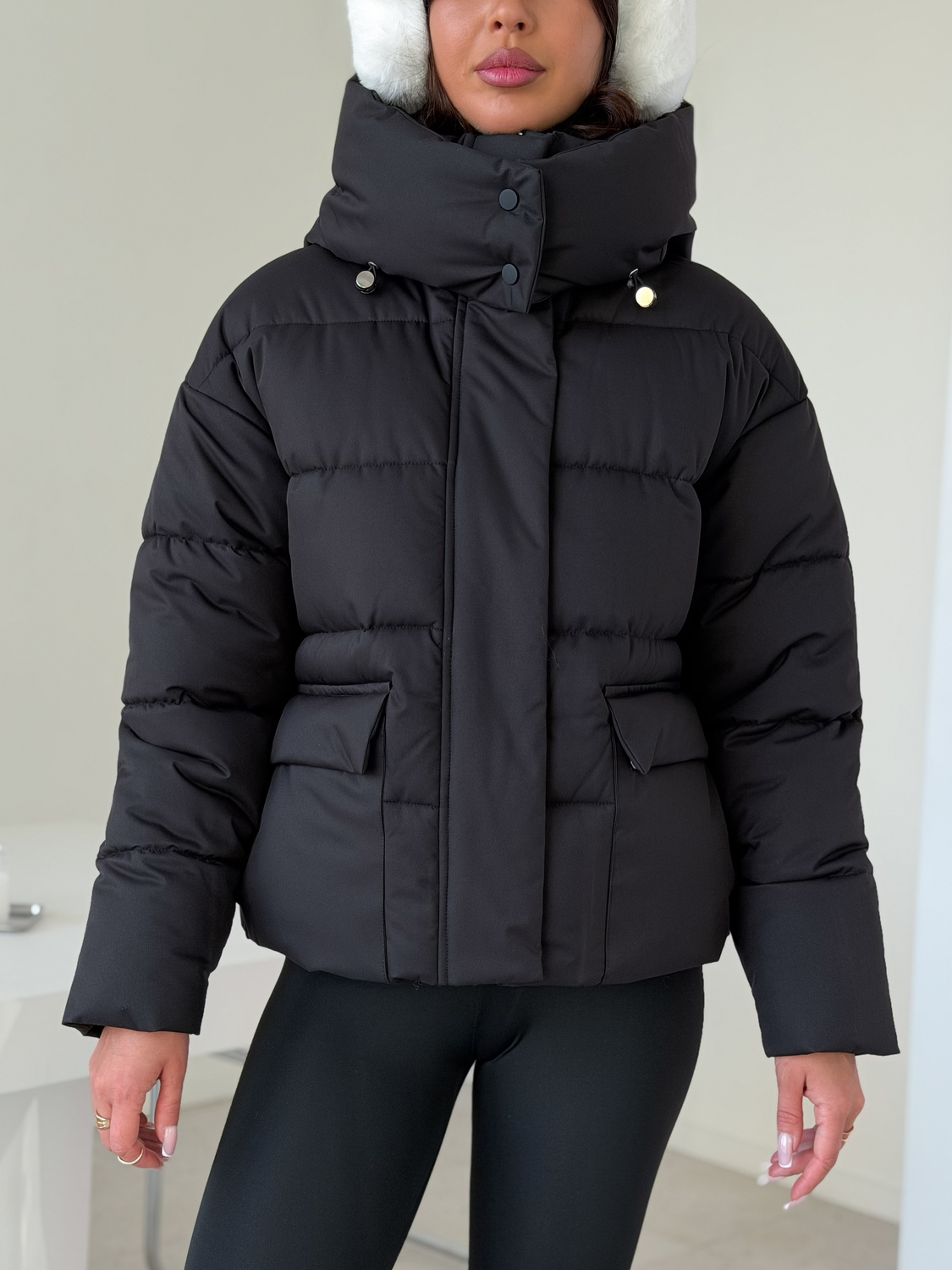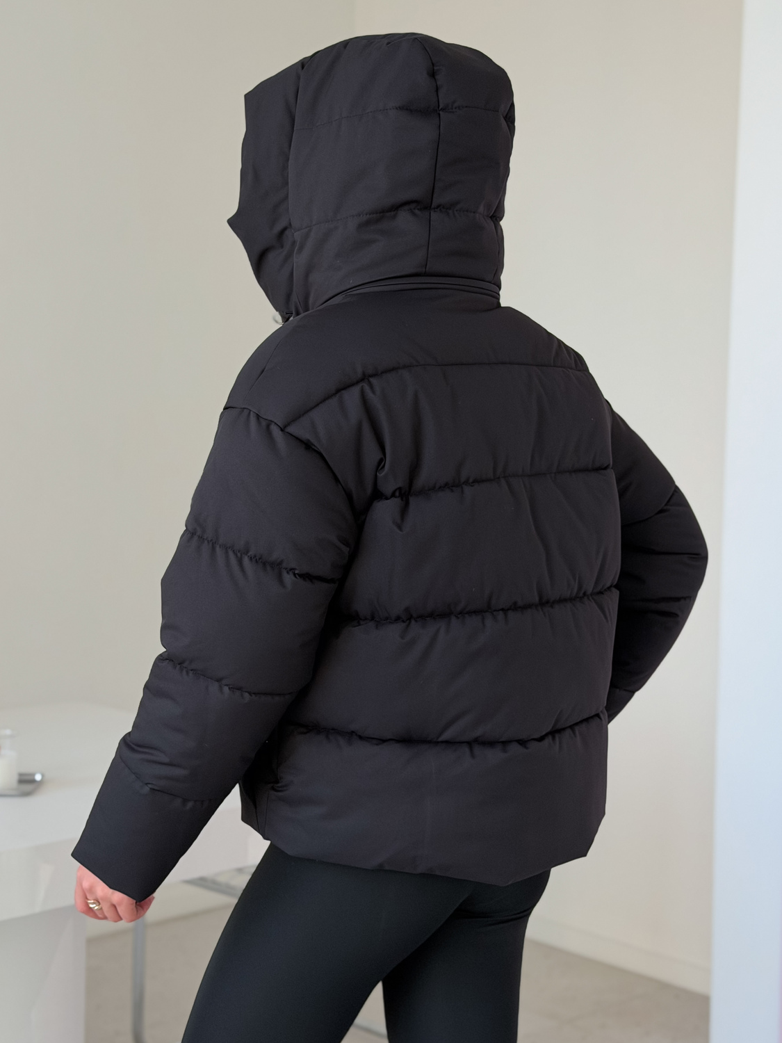 Куртка женская зимняя короткая дутая пуховик зефирка оверсайз черная